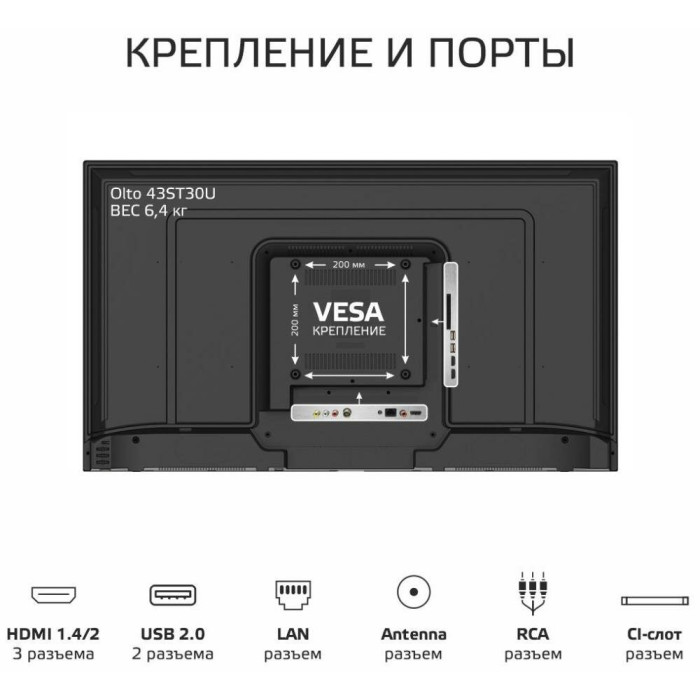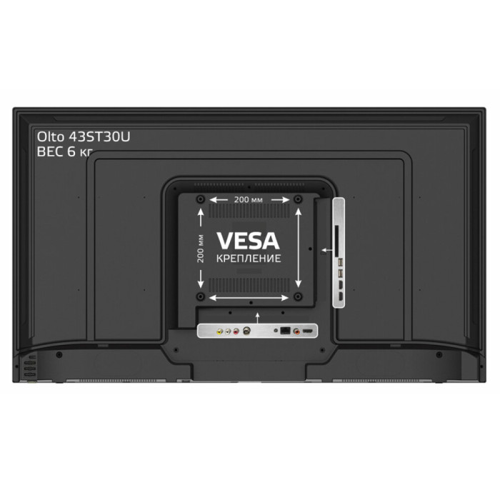 Телевизор OLTO 43ST30U обладает диагональю экрана 43 дюйма и выполнен в черном цвете. Он поддерживает высокое разрешение изображения, что обеспечивает четкое и яркое изображение. Устройство оснащено множеством разъемов для подключения различных устройств, таких как HDMI, USB и другие. Благодаря функции Smart TV, вы можете просматривать интернет-контент на большом экране. В целом, этот телевизор станет отличным выбором для тех, кто ищет качественное и функциональное устройство для домашнего использования.