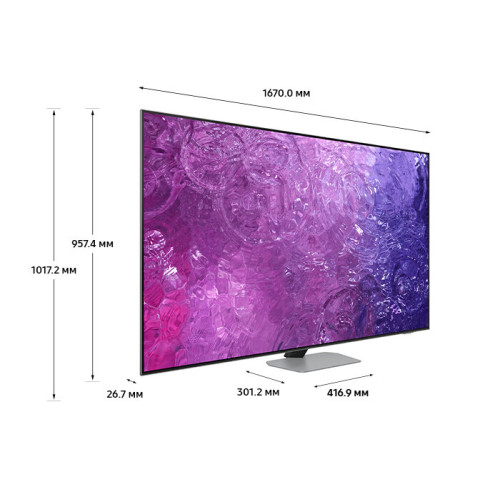Neo QLED телевизор Samsung QE43QN90C 4K Ultra HD Samsung QE43QN90C – это стильный и современный телевизор с 43-дюймовым экраном, который обеспечивает высокое качество изображения в формате 4K Ultra HD. Этот модель оснащена технологией Quantum Matrix Pro, которая улучшает контрастность и цветопередачу, делая просмотр фильмов и телепередач максимально комфортным. Одним из главных преимуществ QE43QN90C является поддержка стандарта HDR10+, который позволяет отображать более широкий диапазон цветов и контрастов, создавая более реалистичное изображение. Встроенный процессор Neo Quantum 4K автоматически оптимизирует качество звука и изображения, делая просмотр еще более приятным. Кроме того, QE43QN90C имеет функцию Ambient Mode+, позволяющую использовать экран телевизора в качестве фоновой картинки. Вы можете выбрать из нескольких предустановленных вариантов оформления или создать свой собственный. QE43QN90C также оснащен встроенным Wi-Fi модулем, что позволяет подключить его к Интернету без использования дополнительных кабелей. Это делает его идеальным выбором для тех, кто хочет смотреть фильмы и сериалы онлайн или использовать телевизор в качестве мультимедийного центра. Экран Технология дисплея Neo QLED Размер диагонали 75 дюймов (191 см) Битность матрицы / Разрядность / Глубина цвета 10 бит Отображаемые цвета 1073741824 цвета 30 бит Разрешение экрана 3840x2160 пикселей (4K Ultra HD) Соотношение сторон / формат экрана 16:9 Частота вертикальной развертки / частота обновления 40 Гц / 120 Гц Шаг пикселя 0.0245 см Плотность пикселей 103 ppi Площадь экрана 92.79 % Угол обзора 178 ° Тип подсветки Mini LED Антибликовое покрытие есть Видео Процессор обработки изображений Neo Quantum Processor 4K Улучшение четкости динамического изображения Auto Motion Plus Расширенный динамический диапазон (HDR) есть Поддержка HDR 10 есть Поддержка HLG есть Поддержка Dolby Vision есть Режим Fimmaker Mode есть Масштабирование разрешения до 4K Ultra HD есть Цифровое шумоподавление есть Контрастность Quantum Matrix, Contrast Enhancer Аудио Выходная мощность 40 Вт Система динамиков 4.2 Сабвуфер есть Поддержка стереозвука NICAM есть Объемное звучание есть Декодер Dolby Digital есть Декодер DTS есть Декодер Dolby Atmos есть Поддержка передачи звука через Bluetooth есть Алгоритм обработки голоса есть Smart сервис Smart TV да Операционная система Tizen Веб-браузер есть Магазин приложений есть Голосовое управление есть Управление жестами нет Пульт One Remote в комплекте (для Samsung) есть Управление ТВ с помощью смартфона есть Поддержка Airplay 2 есть Функция Miracast (с мобильного на TV) есть Режим Multi-View есть Сетевой доступ к файлам PC (DLNA) есть Поддержка " Умный дом" есть Bluetooth Low Energy (Экономичный Bluetooth) есть Функция Виртуальная реальность (360 VR) есть Удаленный доступ есть Удаленное голосовое управление есть Поддержка голосового ассистента есть Дополнительные функции Русифицированное меню есть Автопоиск каналов есть Режим Картина/Галерии есть Интерьерный режим Ambient нет Электронный телегид есть Игровой режим есть Телетекст на русском языке (TTXT) есть Поддержка Time Shift (сдвига времени просмотра) есть Таймер включения/выключения есть Таймер сна есть Невидимые подключения есть Поддержка расширенной функции PVR (для записи ТВ передач) есть Тюнер / телевещание Цифровое эфирное телевещание DVB-T2/T Цифровое кабельное телевещание DVB-C Цифровое спутниковое телевещание DVB-S2/S Приём аналогового сигнала есть Цветовая система PAL, SECAM Поддержка CI (Common Interface) есть, CIƯ.4) Субтитры