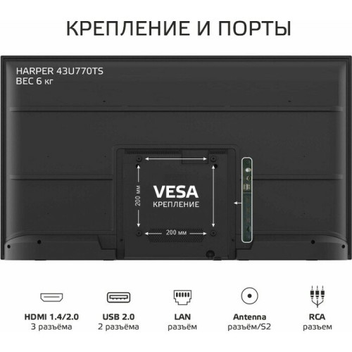 диагональ: 40"-45", Разрешение HD: 4K UHD, частота обновления экрана: 60 Гц, Поддержка цифрового ТВ: DVB-C, DVB-S2, DVB-T, DVB-T2, аналоговый (PAL, SECAM, NTSC), Платформа Smart TV: Android, беспроводная связь: Bluetooth, Wi-Fi, особенности: 3D фильтр шума, телетекст