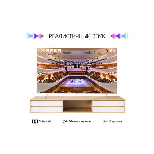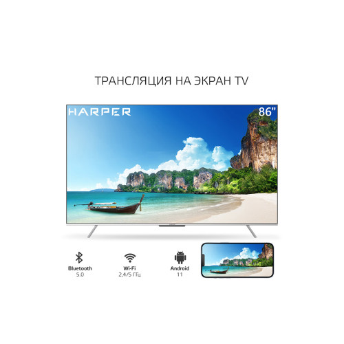 диагональ: 86"-105", Разрешение HD: 4K UHD, частота обновления экрана: 60 Гц, технология экрана: HDR, LED, Поддержка цифрового ТВ: DVB-C, DVB-S, DVB-T, DVB-T2, аналоговый (PAL, SECAM, NTSC), Платформа Smart TV: Android TV, беспроводная связь: Bluetooth, Wi-Fi, Количество входов HDMI: 3, особенности: 3D фильтр шума, EPG, запись ТВ программ, запись видео (PVR), защита от детей, игровой режим, таймер сна, телетекст, электронный Телегид