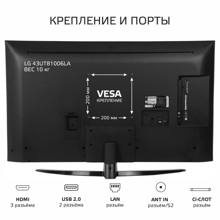 Ethernet - RJ-45, USB Type-A x 2, вход HDMI x 3, слот CI
