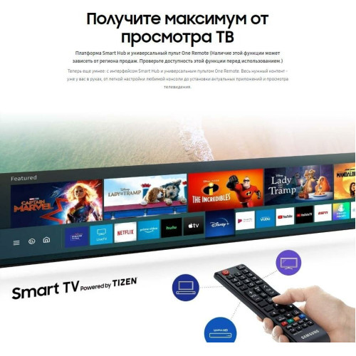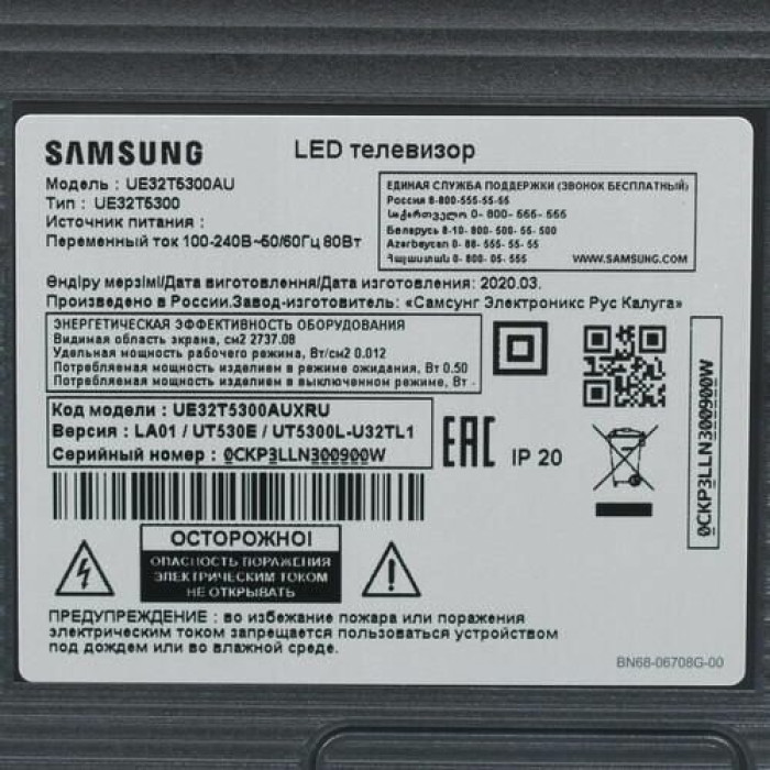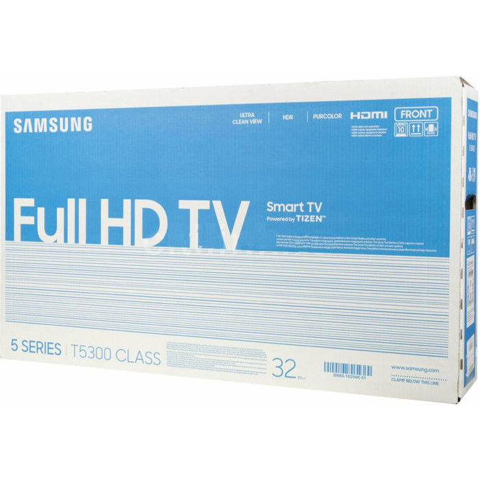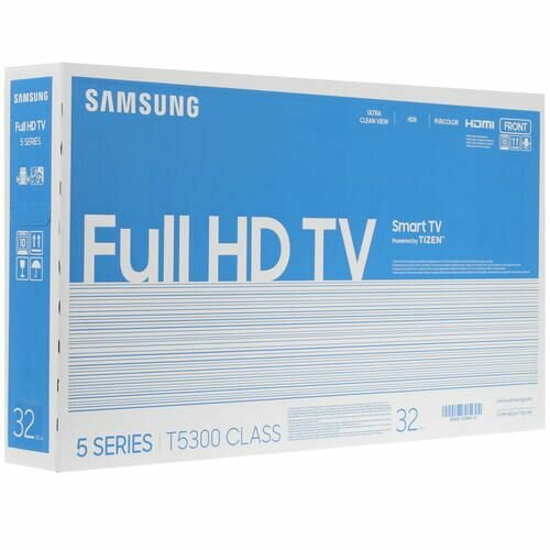 Телевизор LED Samsung UE32T5300AUXRU в черном корпусе с диагональю экрана 32 дюйма (80 см), устанавливается на подставку, состоящую из двух элементов, расположенных по бокам. Для того чтобы начать пользование аппаратом, достаточно включить поиск программ. Вам не потребуется приобретать отдельно цифровую приставку, ведь на устройстве уже установлены тюнеры вещания, соответствующие стандартам DVB-T, DVB-C, а также DVB-T2 и DVB-S. Разрешение экрана 1920х1080, что соответствует формату Full HD. Объемное звучание на Samsung UE32T5300AUXRU обеспечивают динамики мощностью 10 Вт и технология Dolby Digital Plus: вы получаете громкий, насыщенный звук, который способствует погружению в происходящее на экране. Особенность аппарата в поддержке Wi-Fi, открывающего доступ к Smart TV. Система Tizen дает массу преимуществ пользователю, позволяя устройству работать быстрее, не тратя много времени на обработку процессов. Порт USB позволит подключать мобильную технику и накопители, а HDMI – видеотехнику.