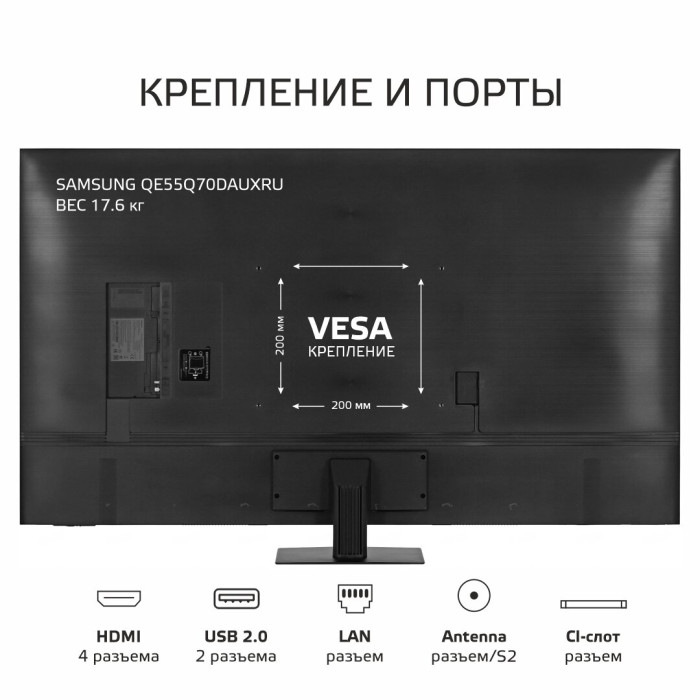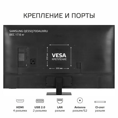 Купите Телевизор Samsung QE55Q70DAUXRU черный по хорошей цене! У нас лучшие акции и скидки! Ознакомьтесь с отличительными характеристиками и реальными отзывами пользователей. Мы предлагаем гарантию и кэшбэк! Удобные условия — кредит и оплата в рассрочку. Быстрая доставка по России, в том числе в Краснодар!