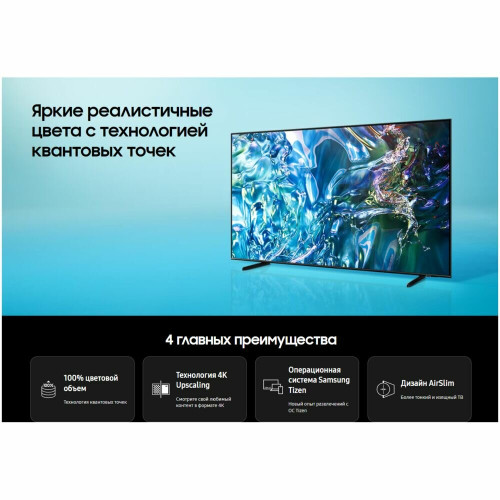 Телевизор Samsung QE65Q60DAUXRU – это современный 65-дюймовый QLED телевизор с высоким качеством изображения и множеством умных функций. Он идеально подходит для просмотра фильмов, игр и телевизионных шоу благодаря ярким цветам и четким деталям.