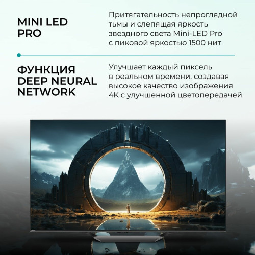 Телевизор Hisense 75U8NQ с технологией Mini-LED PRO, которая филигранно отрисовывает танец теней, демонстрируя все перепады яркости, от слепящего солнечного света до мрака бездонной пропасти. Каждая сцена отображается с бесподобным изяществом, позволяя игре света и тени завораживать зрителя каждое мгновение.