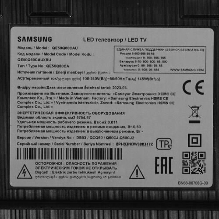 Я приобрёл телевизор Samsung QE50Q60CAUXCE в магазине Goodzone23, и остался в восторге. Выбирал его за большой экран и отличные отзывы о качестве изображения. После установки, я был поражён потрясающей четкостью картинки и глубокими цветами. Напоминает настоящий кинотеатр у себя дома! Чтения и игры тоже стали более яркими благодаря технологиям, использованным в этом телевизоре. Рекомендую его всем технарям и любителям развлечений – вы точно не пожалеете о потраченных деньгах!