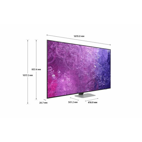 Экран - Тип: Neo QLED - Диагональ экрана: 75" (191 см) - Тип матрицы: QLED - Разрешение экрана: 4K UHD - Разрешение, пикс: 3840x2160 - Формат экрана: 16:9 - Поверхность экрана: антибликовая - Тип LED-подсветки: Mini LED - Технология затемнения: Ultimate UHD Dimming - Частота обновления экрана: 120 Гц Изображение - Технология улучшения контрастности: Quantum Matrix, Hybrid Log Gamma, Contrast Enhancer - Технология улучшения цвета: Neo Quantum HDR+, Expert Calibration - Технология улучшения четкости: Motion Xcelerator Turbo+ - Технология улучшения изображения: Picture Clarity, Real Depth Enhancer, Auto HDR Remastering - Система шумоподавления: да - Поддержка HDR: да - Формат HDR: HDR10+ - Процессор изображения: Neo Quantum 4K Звук - Общая выходная мощность: 60 Вт - Сабвуфер: да - Система звучания: 4.2 - Технология обработки звука: OTS+, Dual Audio Support - Технология Dolby: Atmos Технологии приема сигнала - Цифровой ТВ тюнер: DVB-T2, DVB-S2, DVB-C Поддержка Smart TV - Поддерживаемые ОС: Android, iOS - Smart TV: есть - Возможность передачи изображения с мобильного устройства: да - Операционная система: Tizen Интерфейсы - Порт HDMI: 4 - Порт USB 2.0: 2 - Аудио оптический выход: 1 - Поддержка Ethernet: да - Поддержка CI+: да - Слот для CI: да - Количество антенных входов: 2 Беспроводная связь - Wi-Fi: да - Стандарты Wi-Fi: IEEE 802.11 ac - Поддержка Bluetooth: да - Версия Bluetooth: 5.2 Функциональные особенности - Масштабирование до 4K: да - Регулировка контрастности: да - Мультиэкран: да - Гид по программам: да - Голосовое управление: да - Запись видео: на USB - Воспроизведение с USB: да - Функция TimeShift: есть - Телетекст: есть - Количество языков меню: 32 - Год выхода модели: 2023 г - Дополнительная информация: режим «Кино», режим режиссёра (FMM), поддержка технологии Multiroom Link, поддержка технологии Tap View, режим Ambient+, игровой режим, функция Game Motion Plus, технология FreeSync Premium Pro, поддержка приложения TV Key, совместимость с настенными кронштейнами Slim Fit, Mini, Full Motion Slim (Y22) Корпус - Цвет: чёрный - Цвет рамки: серебристый - Цвет подставки: серебристый - Настенное крепление: да - VESA (размер крепления): 400x400 Питание - Потребляемая мощность при работе: 198 Вт - Потребляемая мощность в режиме ожидания: 0.5 Вт - Максимальная потребляемая мощность: 305 Вт Комплектация - Подставка: в комплекте - Пульт: TM2360F - Пульт ДУ: 1 - Инструкция: да Размеры и вес - Высота с подставкой: 101.72 см - Ширина с подставкой: 167 см - Глубина с подставкой: 30.12 см - Вес с подставкой: 39.7 кг - Высота без подставки: 95.74 см - Ширина без подставки: 167 см - Глубина без подставки: 2.67 см - Вес без подставки: 34.1 кг