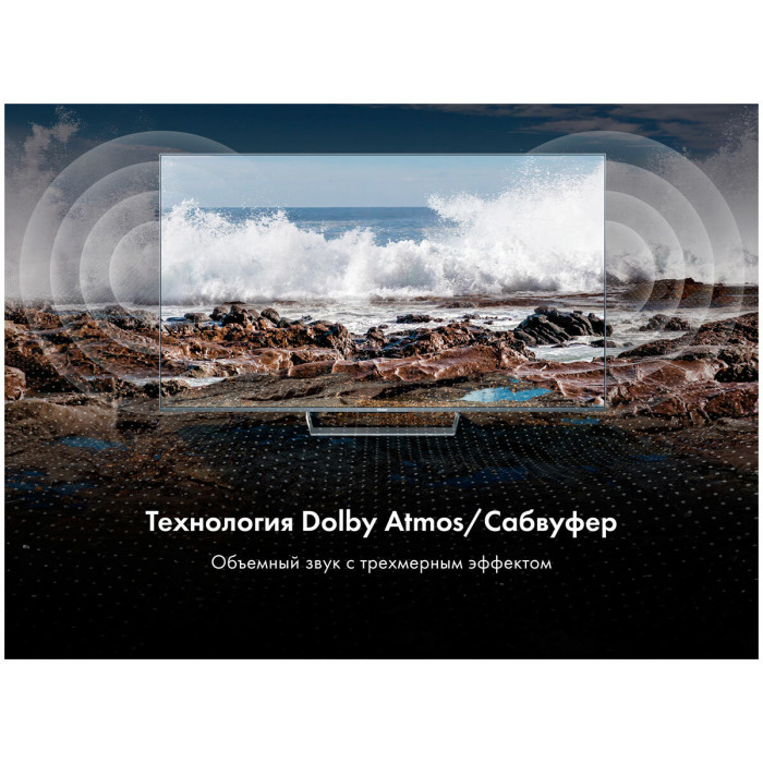 Общие данные: Размеры без подставки: 84х144.8х8 см Размеры с подставкой: 87.1х144.8х25.5 Диагональ: 65" (165 см) Разрешение: 3840x2160 Разъемы (вход): HDMI x 4, USB x 2, антенный x 2, RJ45, CI+ Разъемы (выход): оптический, для наушников Изображение: Технология экрана: mini LED Тип подсветки: mini LED Частота обновления: 144 Гц Время отклика: 6.5 мс Яркость: 600/1300 кд/м² Контрастность: 7000:1 Угол обзора °: 178/178 Dolby Vision IQ Цифровое шумоподавление MEMC HDR 10 HDR10+ Upscaling 4K UHD Системы вещания: DVB-T DVB-T2 DVB-S2 DVB-S DVB-C Система аналогового ТВ: PAL/SECAM Звук: Тип колонок: стерео Суммарная выходная мощность аудио: 50 Вт Dolby Atmos Эквалайзер DBX-TV Объемный звук Dolby Digital Decoding HDMI ARC SMART TV : Операционная система: Android TV 11.0 Сетевые функции: Wi-Fi, Bluetooth 5.2 Версия Wi-Fi: 5 Гц Поддержка YouTube Поддержка Google Play Store Голосовой поиск Особенности: Энергопотребление, Вт: 310 Цвет лицевой панели: серый Голосовое управление без пульта Far Field Time Shift Таймер Вкл/Выкл Воспроизведение с USB носителя Родительский контроль HDMI CEC Вес: 19.2 кг без подставки, 19.7 кг с подставкой В комплекте: Пульт HTR-U35R, шнур питания, руководство пользователя, гарантийный талон, подставка Крепление на стену VESA (мм): 300х400 Внимание: крепление в комплект не входит и приобретается отдельно!