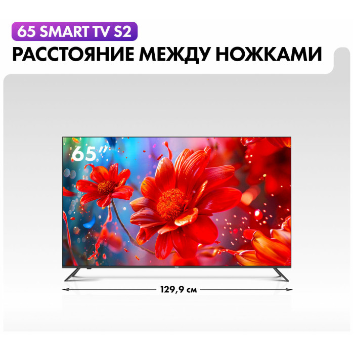 Общие данные: Габариты (без подставки): 84.1х144.96х8.44 см Габариты (c подставкой): 90.5х144.96х33.3 см Диагональ: 65" (165 см) Разрешение: 3840x2160 Время отклика (мс): 6.5 Яркость (кд/м²): 300 Контрастность: 6000:1 Угол обзора: 178/178 ° Разъемы (вход): композитный, HDMI 2.1 х 4, USB 2.0 х 2, антенный х 2, CI+ слот, аналоговый аудио, Ethernet Разъемы (выход): оптический, для наушников Изображение: Тип подсветки: Direct LED Формат экрана: 16:9 Частота обновления (Гц): 60 Цифровое шумоподавление MEMC HDR 10 Upscaling 4K UHD Системы вещания: DVB-T2 DVB-C DVB-S2 Система аналогового ТВ: PAL/SECAM Звук: Тип колонок: cтерео Суммарная выходная мощность аудио (Вт): 20 Эквалайзер DBX-TV Объемный звук Dolby Digital Decoding Smart TV: Операционная система: Android TV 11.0 Поддержка YouTube Поддержка Google Play Store Голосовой поиск Голосовой помощник Google Assistant Wi-Fi встроенный Версия Wi-Fi, Гц: 5 Особенности: Bluetooth 5.1 Стойка: ножки по бокам Time Shift Таймер Вкл/Выкл Воспроизведение с USB носителя Родительский контроль Запись на USB Пульт: HTR-U32R Потребляемая мощность: 170 Вт Вес: 16.3 кг без подставки, 16.7 кг с подставкой Крепление на стену VESA (мм): 400х300 Внимание: крепление в комплект не входит и приобретается отдельно!