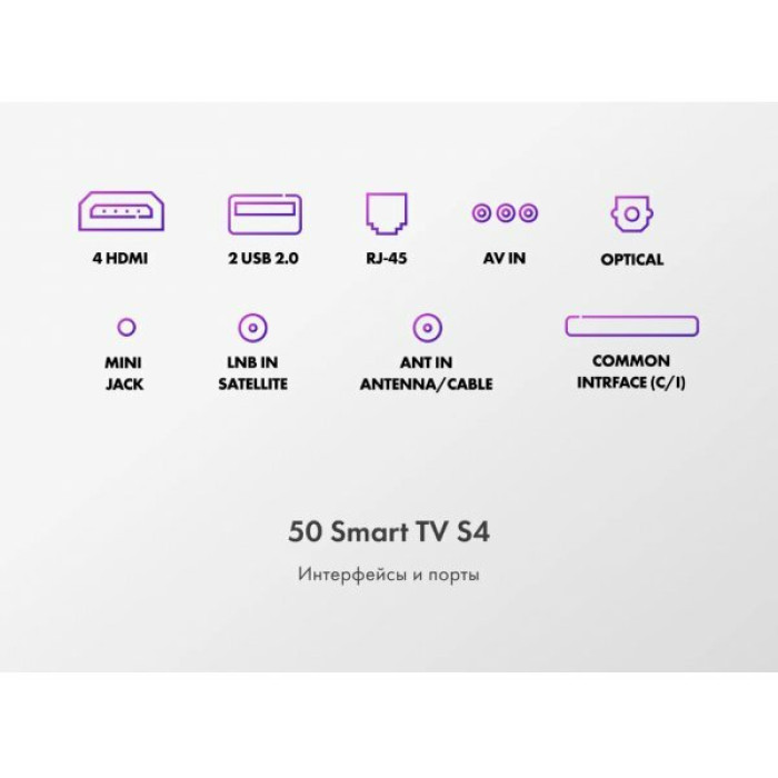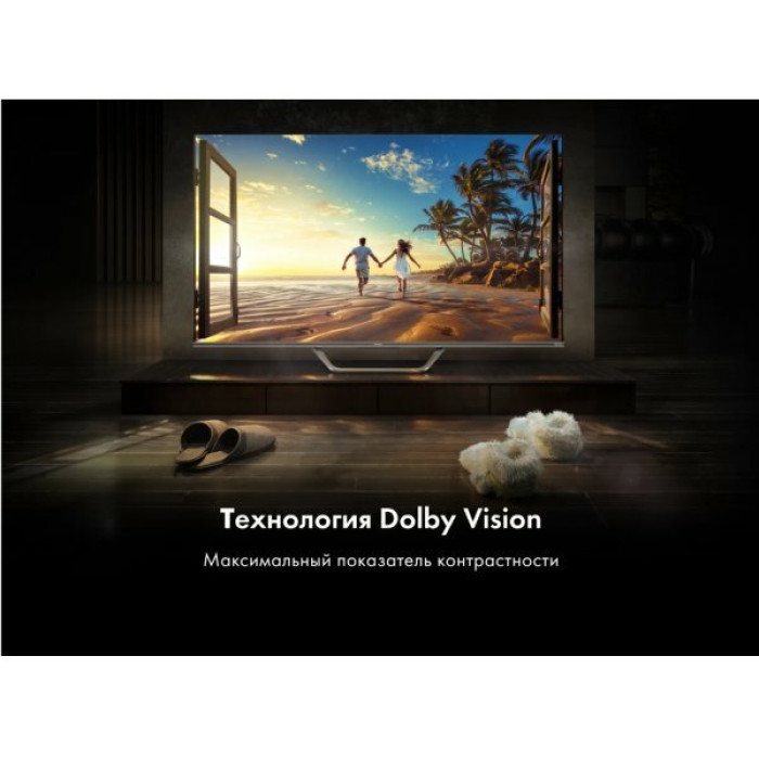 Общие данные: Габариты (без подставки): 65.18х111.12х8.8 см Габариты (с подставкой): 71.05х111.12х27.72 см Диагональ: 50" (127 см) Соотношение сторон: 16:9 Разрешение: 3840х2160 Яркость: 320 кд/м2 Контрастность: 6000:1 Угол обзора: 178/178 ° Время отклика: 6.5 мс Разъемы (вход): HDMI 2.1 х 4, USB 2.0 х 2, антенный, композитный, CI+, аналоговый аудио, Ethernet Разъемы (выход): выход для наушников Изображение: Тип подсветки: HQLED Частота обновления: 60 Гц HDR-Dolby Vision Цифровое шумоподавление MEMC HDR 10 Upscaling 4K UHD Системы вещания: DVB-T DVB-T2 DVB-C DVB-S DVB-S2 Система аналогового ТВ: PAL/SECAM Звук: Тип колонок: стерео Суммарная выходная мощность аудио: 30 Вт Dolby Atmos Эквалайзер DBX-TV Объемный звук Dolby Digital Decoding SMART TV : Операционная система: Android TV 11.0 Сетевые функции: Wi-Fi, Bluetooth 5.1 Версия Wi-Fi: 5 Гц Поддержка YouTube Поддержка Google Play Store Голосовой поиск Особенности: Энергопотребление: 145 Вт Цвет лицевой панели: серый Голосовое управление без пульта Far Field Таймер Вкл/Выкл Воспроизведение с USB носителя Родительский контроль Запись на USB HDMI CEC Вес: 9.5 кг без подставки, 10 кг с подставкой Крепление на стену VESA (мм): 300х300 Внимание: крепление в комплект не входит и приобретается отдельно!