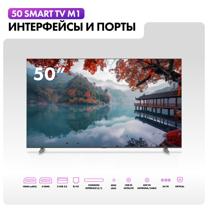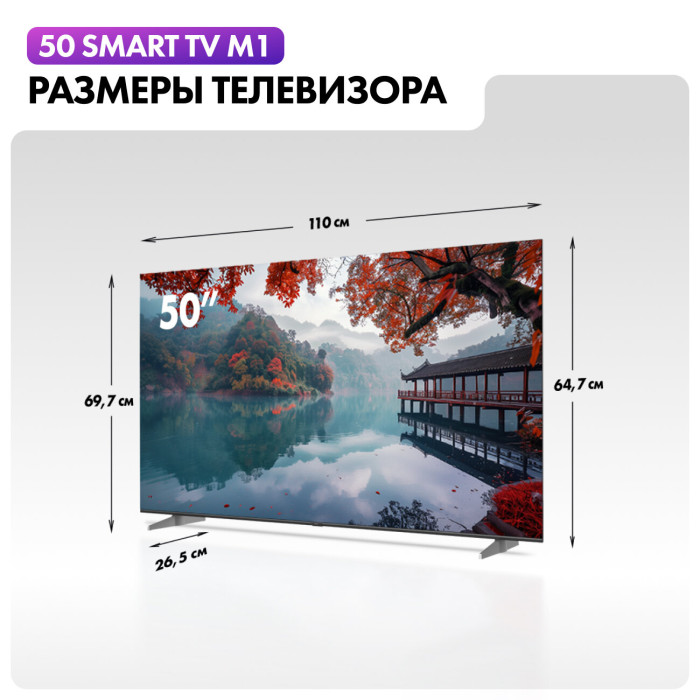 Общие данные: Габариты (без подставки): 64.7х111х8.5 см Габариты (с подставкой): 67.9х111х23.8 см Диагональ: 50" Соотношение сторон: 16:9 Разрешение: 4K UHD 3840 х 2160 Разъемы (вход): HDMI х 4, USB х 2, антенный х 2, композитный, CI+, аналоговый аудио, Ethernet Разъемы (выход): выход для наушников Изображение: Технология экрана: LED Тип подсветки: Direct LED Частота обновления: 60 Гц Время отклика: 9.5 мс Яркость: 280 кд/м² Контрастность: 4000:1 Угол обзора: 178/178 ° Цифровое шумоподавление HDR 10 Системы вещания: DVB-T DVB-T2 DVB-S2 DVB-C Система аналогового ТВ: PAL/SECAM Звук: Тип колонок: стерео Суммарная выходная мощность аудио: 27 Вт Эквалайзер DBX-TV Объемный звук Dolby Digital Decoding HDMI ARC SMART TV : Операционная система: Android TV 11.0 Сетевые функции: Wi-Fi, Bluetooth 5.1 Версия Wi-Fi: 5 Гц Поддержка YouTube Поддержка Google Play Store Особенности: Энергопотребление: 120 Вт Цвет лицевой панели: серый Time Shift Таймер Вкл/Выкл Воспроизведение с USB носителя Родительский контроль ДЗапись на USB HDMI CEC Вес: 8.2 кг без подставки, 8.3 кг с подставкой В комплекте: Пульт HTR-U32R, шнур питания, руководство пользователя, гарантийный талон, подставка Крепление на стену VESA (мм): 400х300 Внимание: крепление в комплект не входит и приобретается отдельно!