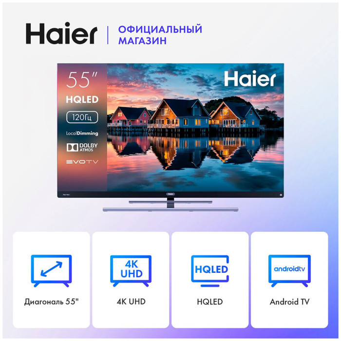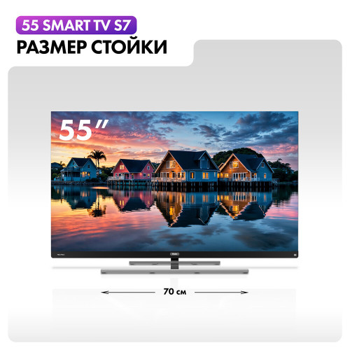 Общие данные: Габариты (без подставки): 73х122.9х6.8 см Габариты (с подставкой): 78.2х122.9х25.5 см Диагональ: 55" (140 см) Соотношение сторон: 16:9 Разрешение: 3840х2160 Яркость: 400 кд/м2 Контрастность: 5500:1 Угол обзора: 178/178 ° Время отклика: 6.5 мс Разъемы (вход): HDMI 2.1 х 4, USB 2.0 х 2, вход для антенны х 2, композитный, CI+, аналоговый аудио, Ethernet Разъемы (выход): выход для наушников Изображение: Тип подсветки: QLED Частота обновления: 120 Гц HDR-Dolby Vision Цифровое шумоподавление MEMC HDR 10 Upscaling 4K UHD Системы вещания: DVB-T DVB-T2 DVB-C DVB-S2 Система аналогового ТВ: PAL/SECAM Звук: Тип колонок: стерео Выходная мощность аудио: 30 Вт Dolby Atmos Эквалайзер dbx tv Объемный звук Dolby Digital Decoding SMART TV : Операционная система: Google TV Сетевые функции: Wi-Fi, Bluetooth 5.1 Версия Wi-Fi: 5 Гц Поддержка YouTube Поддержка Google Play Store Голосовой поиск Особенности: Энергопотребление: 230 Вт Цвет лицевой панели: темно-серый Голосовое управление без пульта Far Field Time Shift Таймер Вкл/Выкл Воспроизведение с USB носителя Родительский контроль Запись на USB HDMI CEC Вес: 14 кг без подставки, 15.2 кг с подставкой Крепление на стену VESA (мм): 200х200 Внимание: крепление в комплект не входит и приобретается отдельно!