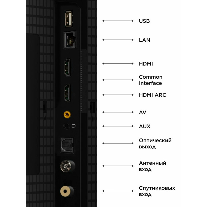 Ethernet - RJ-45, USB Type-A, вход HDMI, Антенный вход (RF)