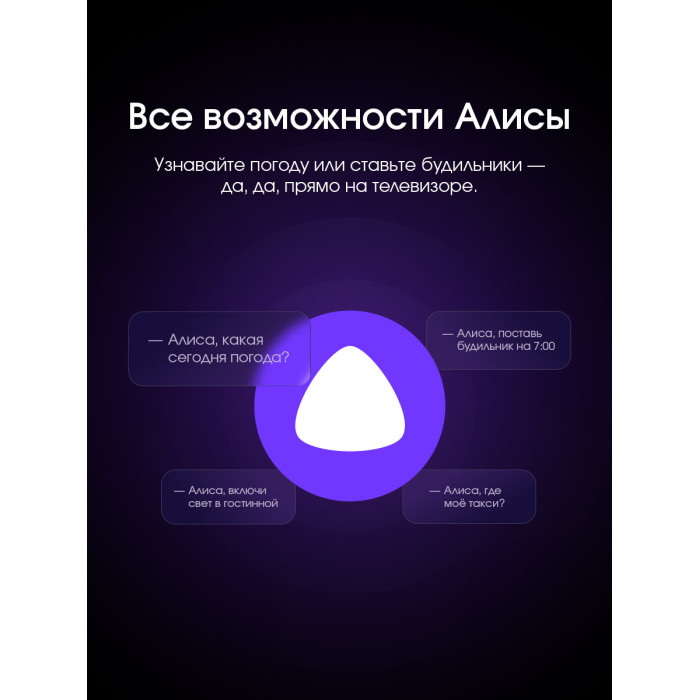 3D фильтр шума, DLNA, EPG, защита от детей, таймер сна, электронный Телегид, Пульт ДУ, Управление голосом