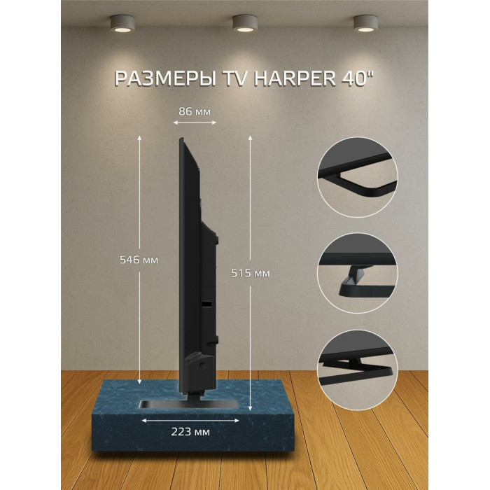 USB Type-A, вход HDMI, слот CI/CI+, 3.5 мм, S/PDIF