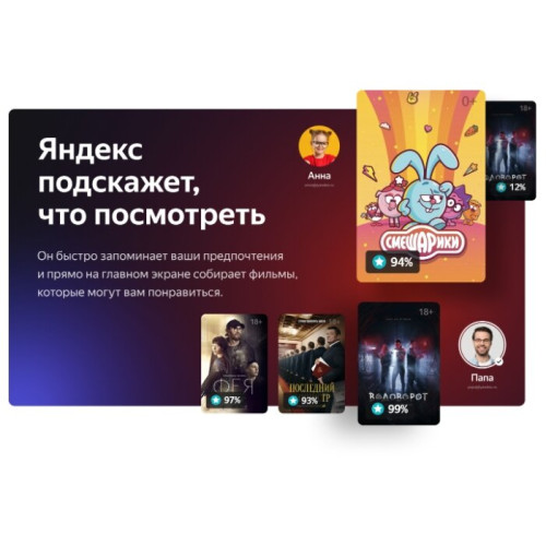 IPTV+TV в одном приложении; голосовой пульт с поиском; оптимизация системы; Кинопоиск HD; подписка Яндекс Плюс на 3 мес.