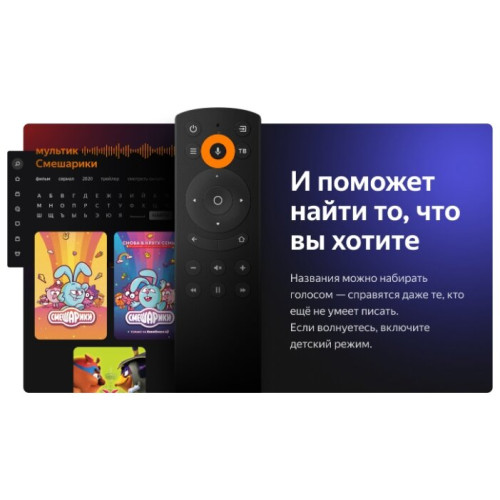 IPTV+TV в одном приложении; голосовой пульт с поиском; оптимизация системы; Кинопоиск HD; подписка Яндекс Плюс на 3 мес.