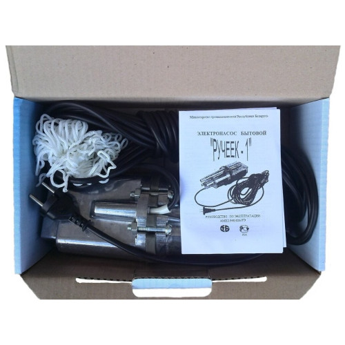 Ручеек-1 - вибрационный насос с верхним забором воды. Длина кабеля 15 метров. Предназначен для подъема пресной воды из скважин диаметром более 100 мм и глубиной до 60 метров, колодцев и любых водоемов. Может использоваться для полива огородов, садов, а также для бытового водоснабжения. Насос не имеет трущихся поверхностей и вращающихся деталей, что способствует длительной и безотказной работе. Конструктивно выполнен с верхним забором воды, что обеспечивает постоянное охлаждение электромагнитной системы, предохраняя его от перегрузки. Верхний забор воды исключает также замутнение воды в источнике и засасывание ила со дна. Производительность насоса зависит от глубины скважины (колодца) и определяется по графику зависимости производительности насоса Q(л/мин) от напора H(м).