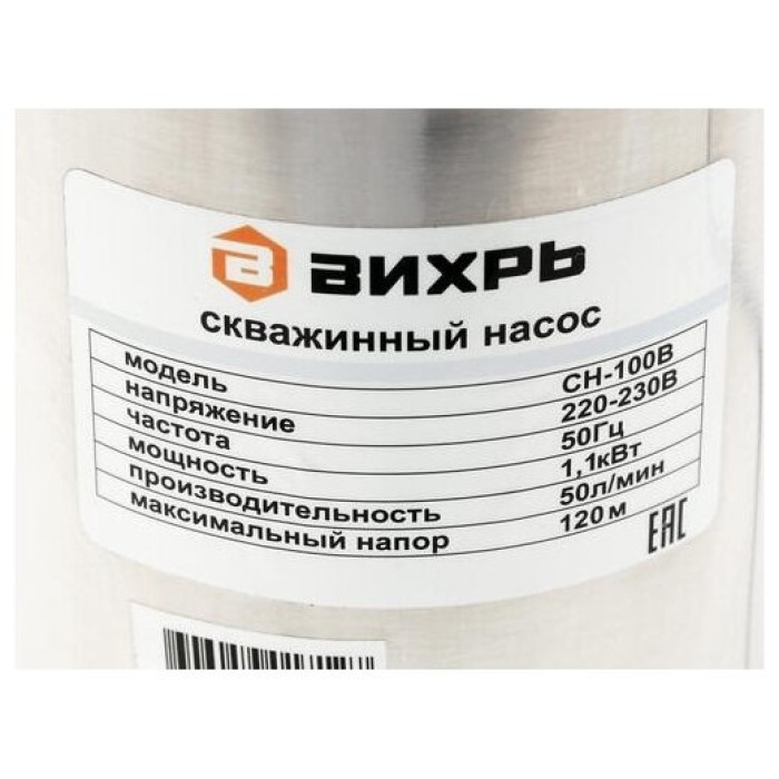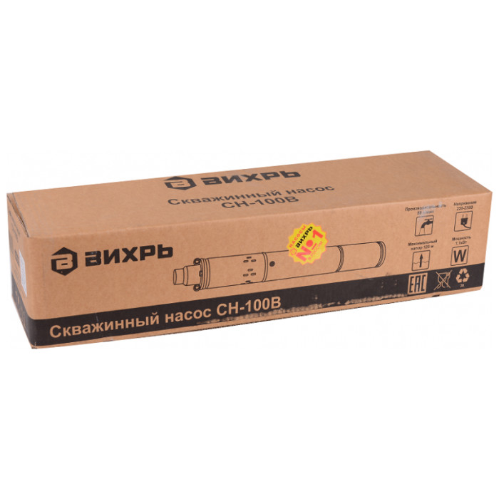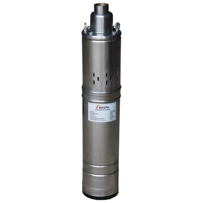Скважинный насос Вихрь СН-100В предназначен для подачи воды в бытовых условиях из скважин, могут использоваться также для подачи воды из шахтных колодцев, резервуаров и открытых водоемов для полива садов и огородов. По степени защиты от поражения электрическим током электронасос относится к погружным насосам класса IPX8 и может работать полностью погруженным в воду на глубину до 40 метров. При этом расстояние от дна скважины до насоса не должно быть менее 0,6 метра. Насос СН-100В относится к вихревому типу, основным его преимуществом является создание высокого давления при малой подаче воды, поэтому насос лучше всего использовать для подачи воды из малодебитных скважин.