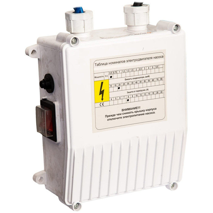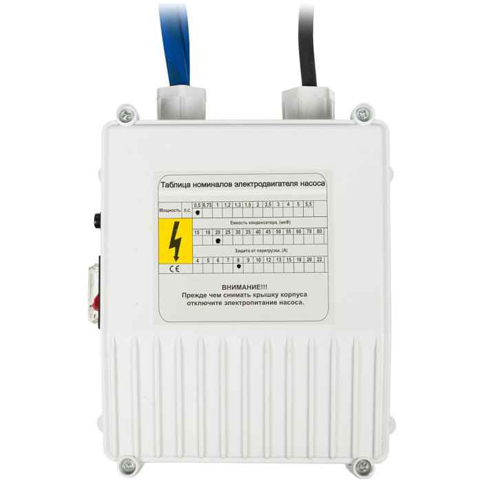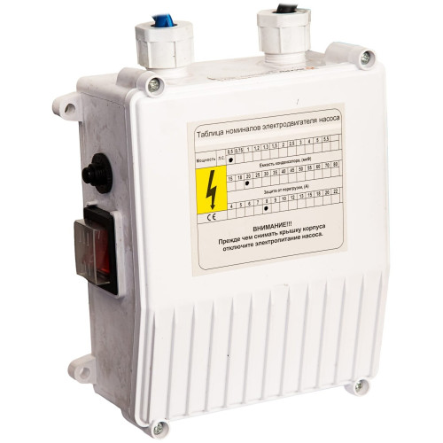 материал насосной части пластик, конденсаторная коробка есть, содержание песка - 180 г/м3