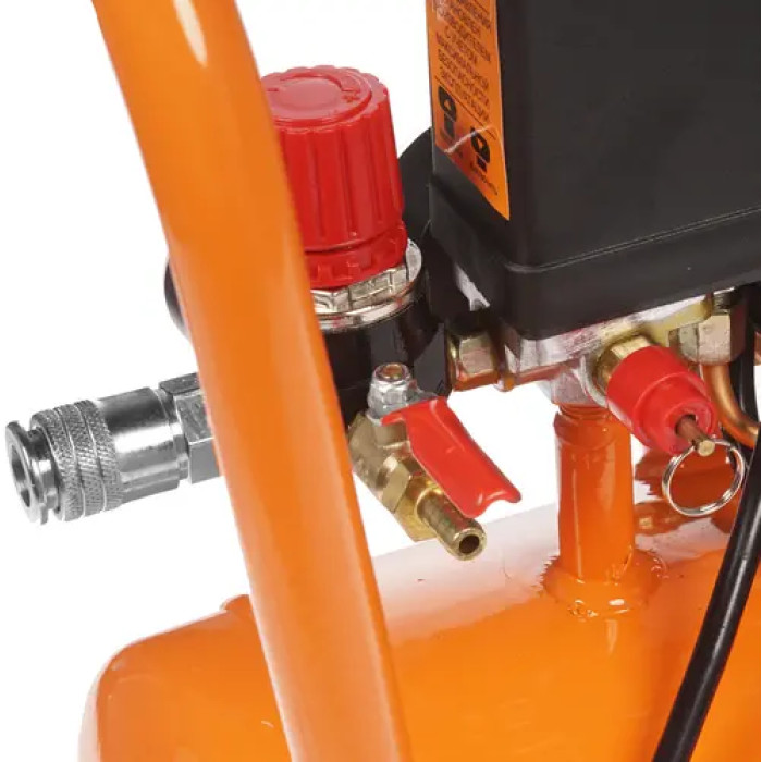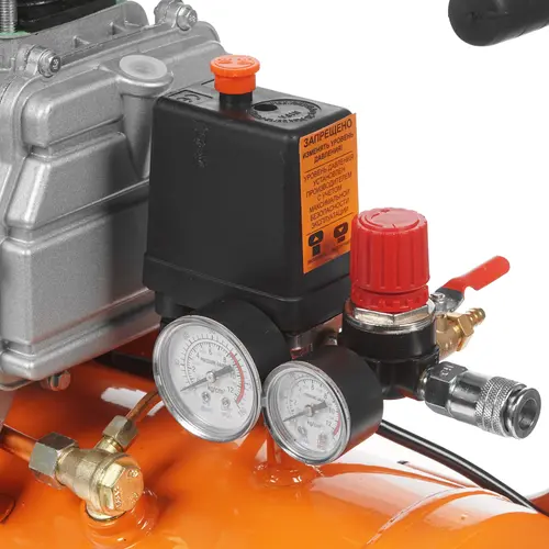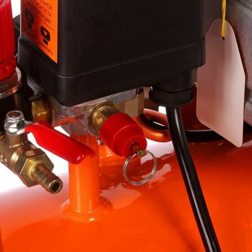 в комплекте: компрессор, колёса, сапун масляный, смазочное масло для поршневых компрессоров в пластмассовой емкости (250 мл), инструкция; рабочий диапазон температуры окружающей среды: +5...+35 °C