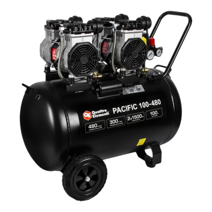 Компрессор поршневой безмасляный QUATTRO ELEMENTI PACIFIC 100-480 (480 л/мин, 100 л, 3.5 л.с, 8 бар, 60.0 кг) 915-373 представляет собой однофазную безмасляную воздушную модель, которая предназначена