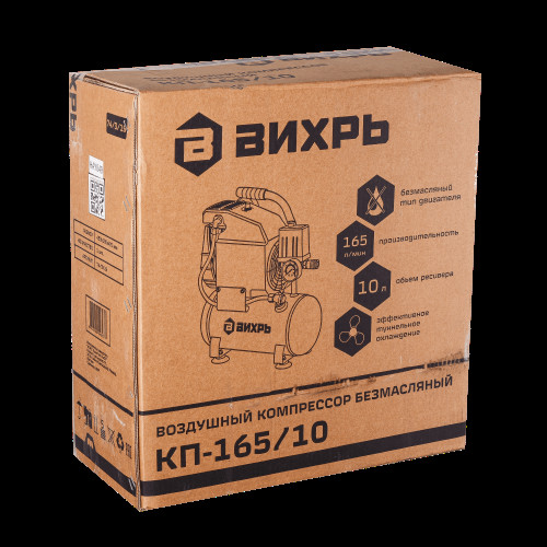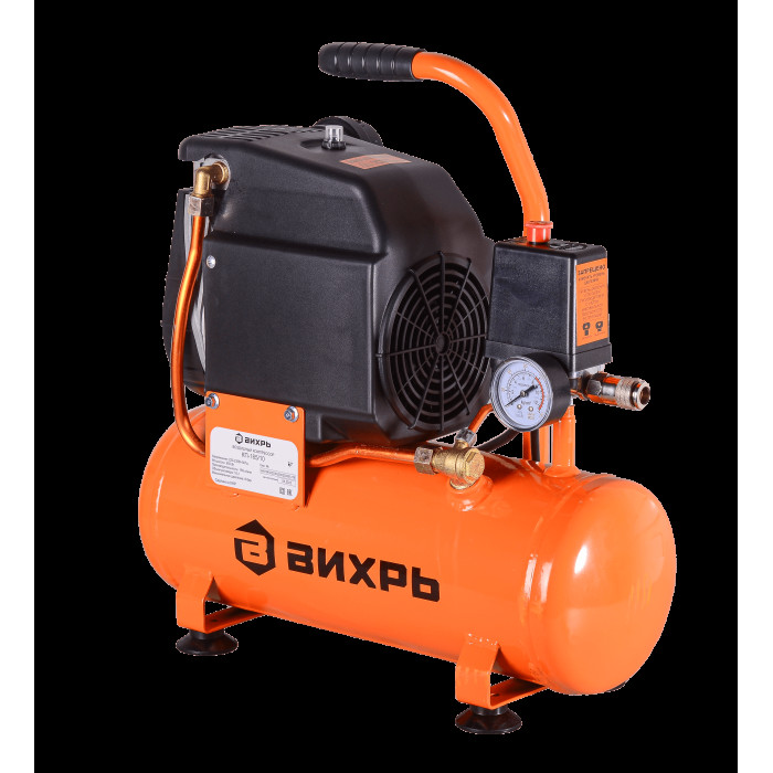 Компрессор Вихрь КП-165/10 незаменимое устройство при работе с пневмооборудованием. Без него не обойтись на шиномонтаже, на многих производственных линиях, в строительстве. Конструкция устройства предполагает наличие ресивера, в котором будет накапливаться сжатый воздух, а также собираться конденсат. Прессостат или реле давления обеспечивает поддержание рабочего давления на заданном уровне. Система регуляторов, разгрузочных воздуховодов, предохранительных клапанов позволяет вносить изменения в заданные параметры и поддерживать функционирование на нужном уровне. Компрессор Вихрь КП-165/10 является хорошим дополнением к механическому оборудованию, которому для функционирования необходим сжатый воздух. Поршневая безмасляная конструкция делает устройство компактным и удобным в эксплуатации. Особенности Компрессор рассчитан на напряжение в сети от 220 до 230 В. Максимальная производительность составляет 165 л/мин. Номинальное давление – 8 Бар. Объем ресивера составляет 10л. Уровень шума может достигать 60 Дб. Это позволяет использовать компрессор в местах, имеющих ограничения по уровню этого показателя. Безмасляный тип дает возможность не думать про уровень масла в устройстве. Кроме этого, воздух в помещении не будет содержать его примесей. Термозащита отключает устройство при перегреве, тем самым увеличивая срок его службы. На ножках есть антивибрационные накладки. Манометр позволяет контролировать рабочие параметры. Комплектация Воздушный компрессорРезиновая подножка 4 шт. Воздушный фильтр в корпусеРуководство по эксплуатацииКомплект крепежа Характеристики Номинальная мощность, Вт: 950Номинальное давление компрессора, бар: 8Напряжение питающей сети, В: 220-230В, 50 ГцКоличество цилиндров: 1Вид передачи: прямаяТип компрессора: поршневой, безмасляныйОбъём ресивера, л: 10Максимальная производительность, л/мин: 165