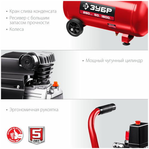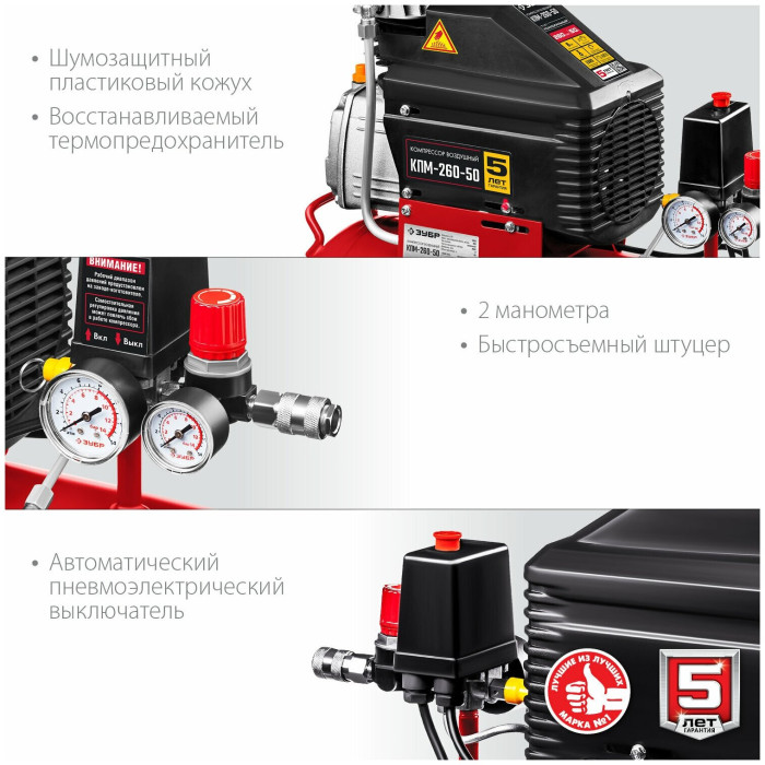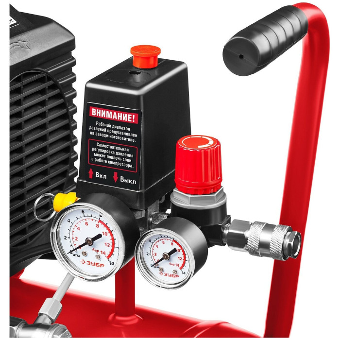 индикатор уровня масла, манометр, регулировка давления, ручка для переноски