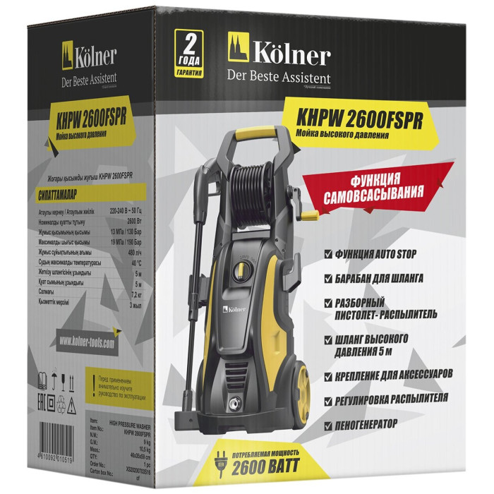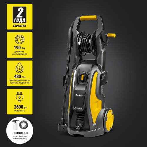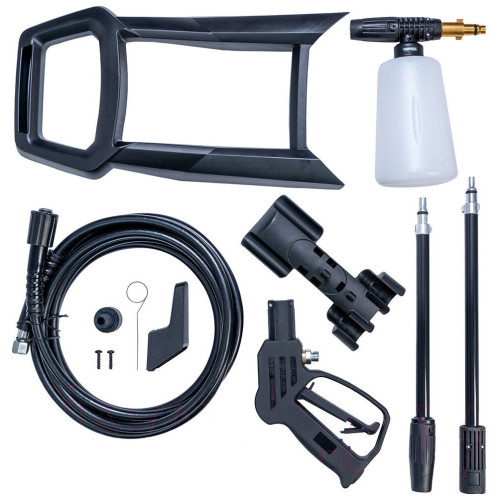 пистолет распылитель 1 шт., удлинитель пистолета с соплом 1 шт., гибкий шланг высокого давления 1 шт., пеногенератор 1 шт., переходник 1 шт.
