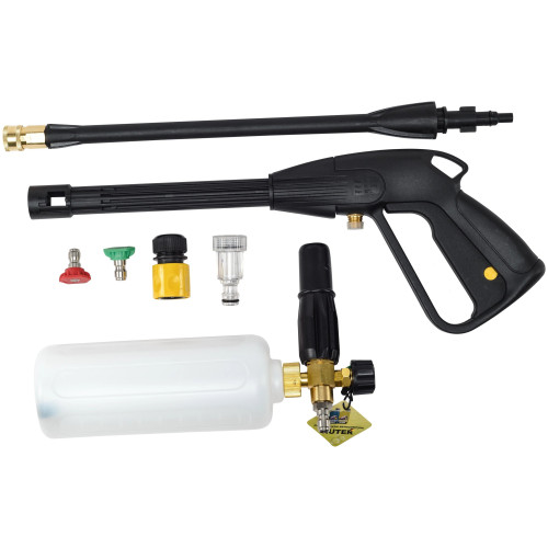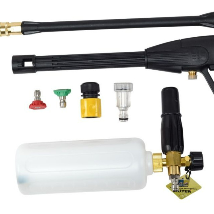 Мини-мойка – компактный и производительный аппарат, который поможет убрать грязь с автомобиля, велосипеда, мотоцикла. Она используется также в очистке фасадов зданий, дорожек, придомовых и парковых территорий. Оснащена профессиональным пеногенератором, который создает густую и плотную пену, улучшая процесс мытья.