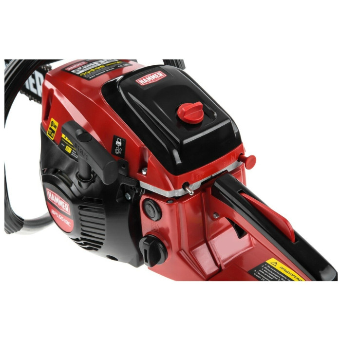 бензопила цепная, пильная шина, пильная цепь, защитный кожух шины, набор инструментов, емкость для смешивания топливной смеси, руководство по эксплуатации, гарантийный талон