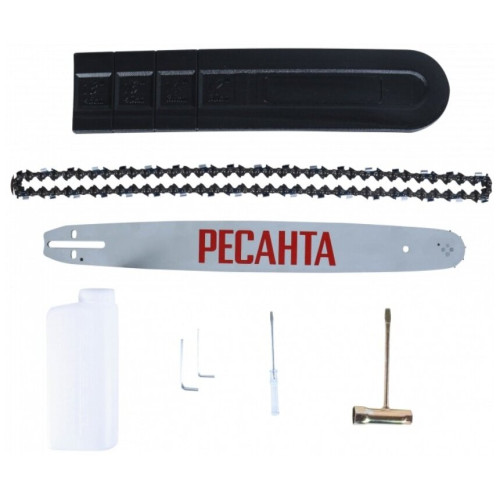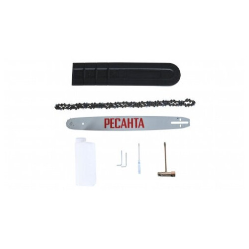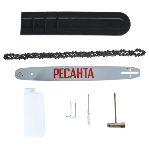 бензопила - 1 шт,шина - 1 шт,цепь - 1 шт,защитный кожух шины - 1 шт,ёмкость для смешивания топливной смеси - 1 шт. паспорт продукции - 1 шт,комплект инструментов и принадлежностей - 1 шт,упаковка