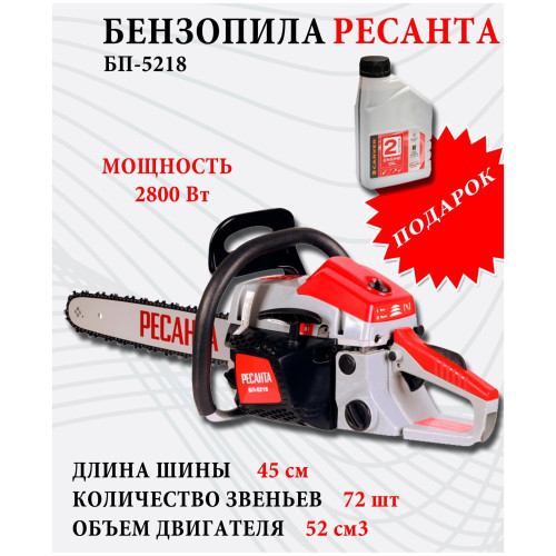 бензин АИ-92; автоматическая смазка цепи; 72 звена