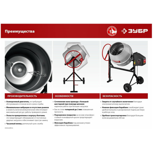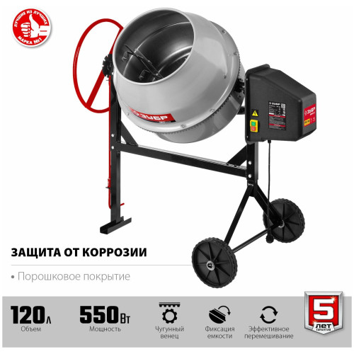 мощность: 0.55 кВт, напряжение: 220 В, принцип действия: принудительное смешивание, объем смесителя: 120 л, объем готового раствора: 60 л, венец: чугунный, вес: 37.50 кг, высота: 63 см, ширина: 47 см, глубина: 81 см