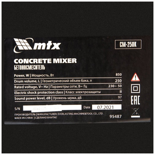 мощность: 8.50 кВт, напряжение: 220 В, объем смесителя: 250 л