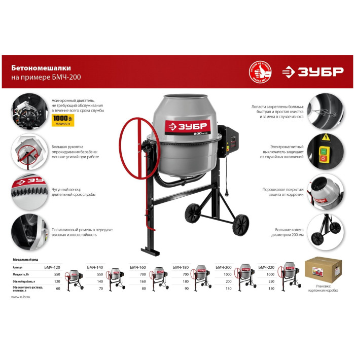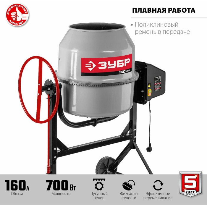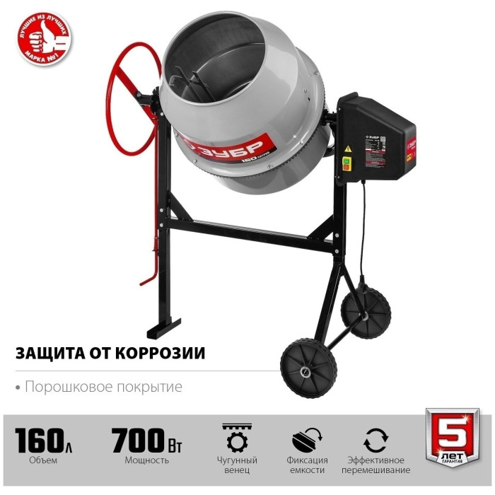 мощность: 0.70 кВт, напряжение: 220 В, принцип действия: гравитационный, объем смесителя: 160 л, объем готового раствора: 80 л, венец: чугунный, вес: 47.40 кг, высота: 52 см, ширина: 61 см, глубина: 79 см