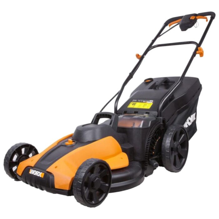 в комплекте: газонокосилка - 1 шт.; штекер для мульчирования - 1шт.; аккумулятор WORX 20V 4 Ач - 2 шт.; двойное зарядное устройство WA3883 - 1 шт.; травосборник - 1 шт.; максимальная площадь скашивания: 500 м2