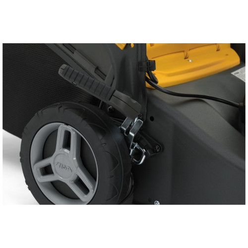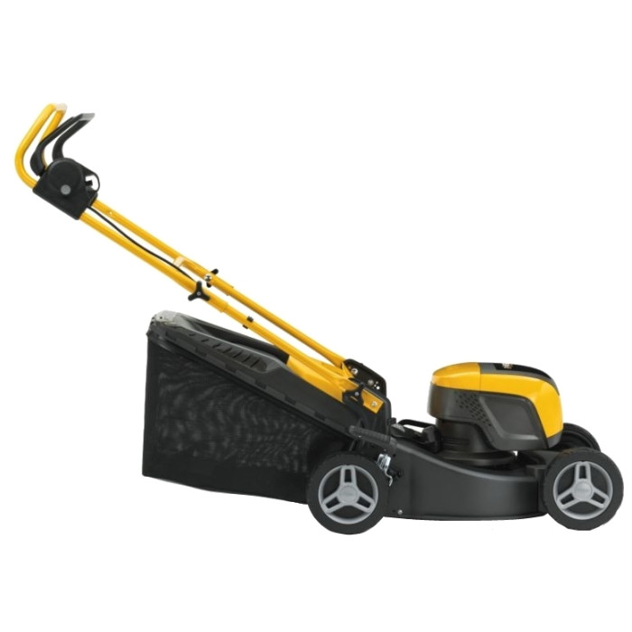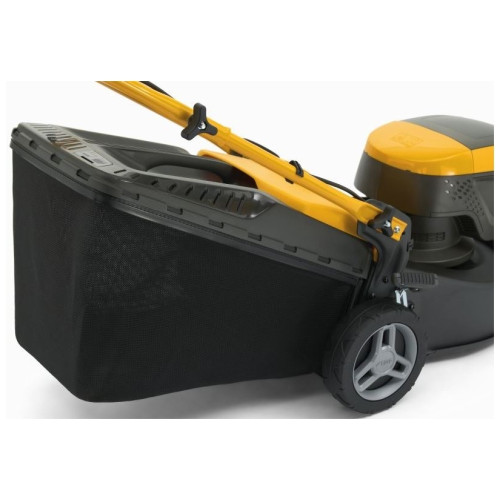 в комплекте травосборник, мульчирующая заглушка, направляющий кожух, упор для работы заднего выброса, аккумулятор, зарядное устройство