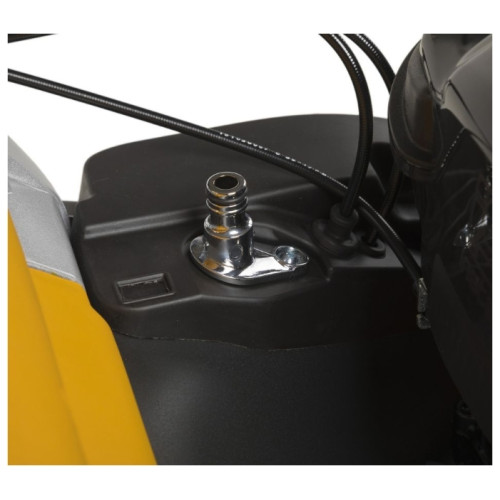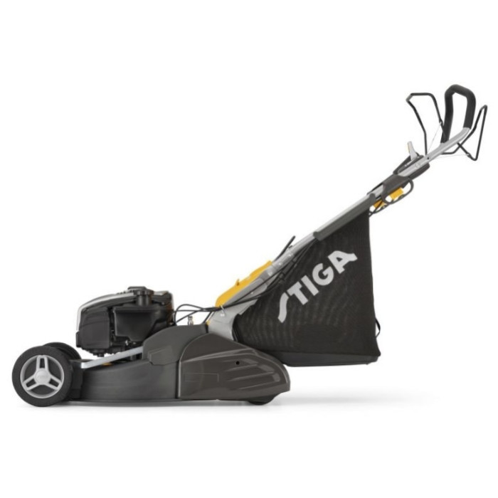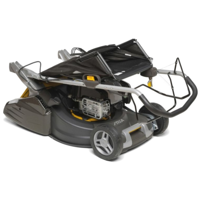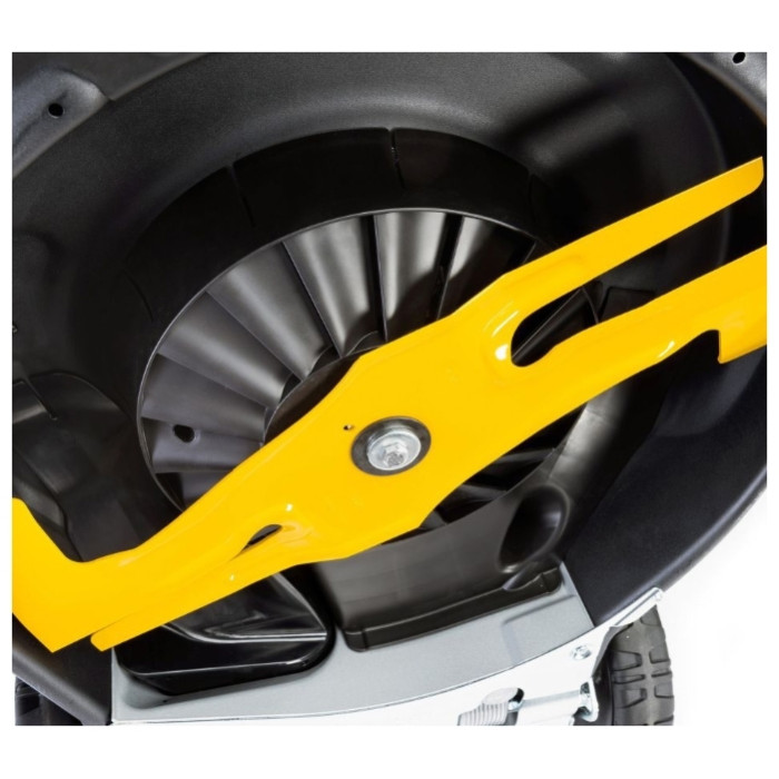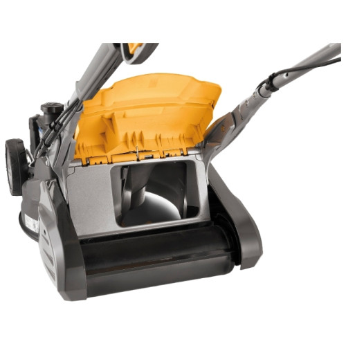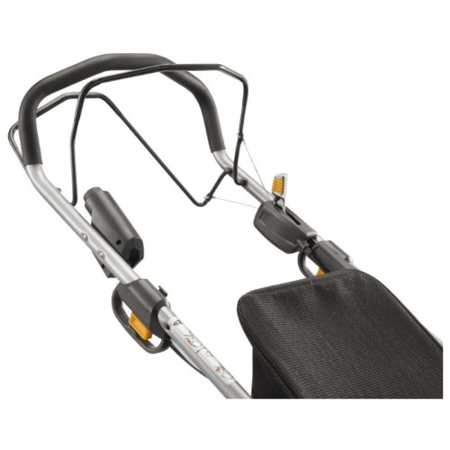 оснащена задним роликом для создания идеально ровных полос на газоне; травосборник с индикатором заполнения; скорость передвижения: 4 км/ч