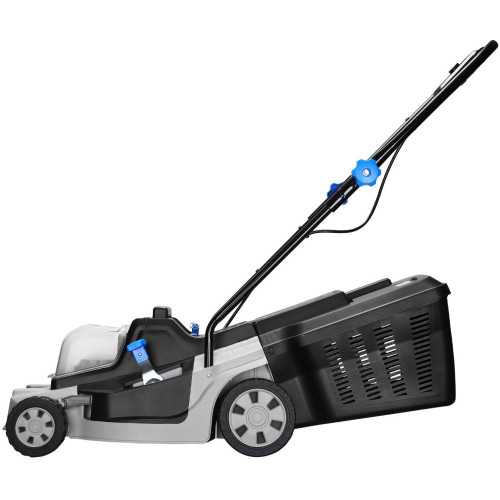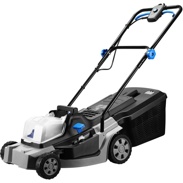 тип двигателя: аккумуляторный, тип газонокосилки: колесная (несамоходная), напряжение аккумулятора: 20 В, емкость аккумулятора: 4 А·ч, ширина скашивания: 40 см, количество колес: четырехколесная, конструктивные особенности: складная ручка, дополнительные функции: регулировка высоты скашивания, привод: ручной, травосборник: жесткий, объем травосборника: 40 л, максимальная высота скашивания: 57 мм, минимальная высота скашивания: 20 мм