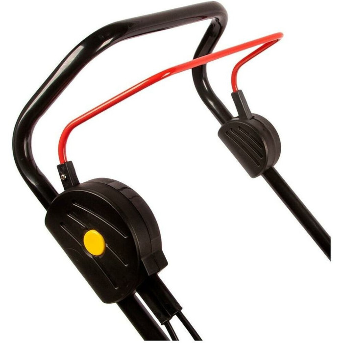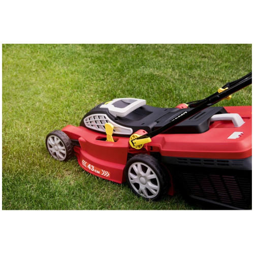 тип газонокосилки колесная (несамоходная), ширина скашивания 43 см, площадь скашивания 800 м², количество колес четырехколесная, конструктивные особенности регулировка ручки по высоте, складная ручка, дополнительные функции регулировка высоты скашивания, материал корпуса пластик, травосборник жесткий, объемом 50 л, система выброса задний, высота скашивания 25-85 мм, габариты (ГхШхВ) 37x54x78 см, вес 12.8 кг