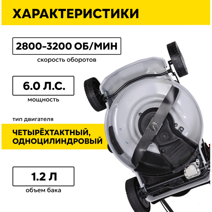 антивибрационная система, возможность установки мульчирующей насадки, регулировка высоты скашивания, тормоз двигателя