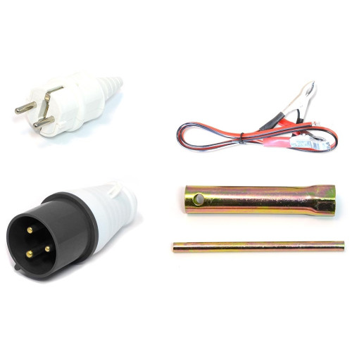 комплектация: электрическая вилка - 2 шт., комплект проводов, свечной ключ; разъем для подключения АВР