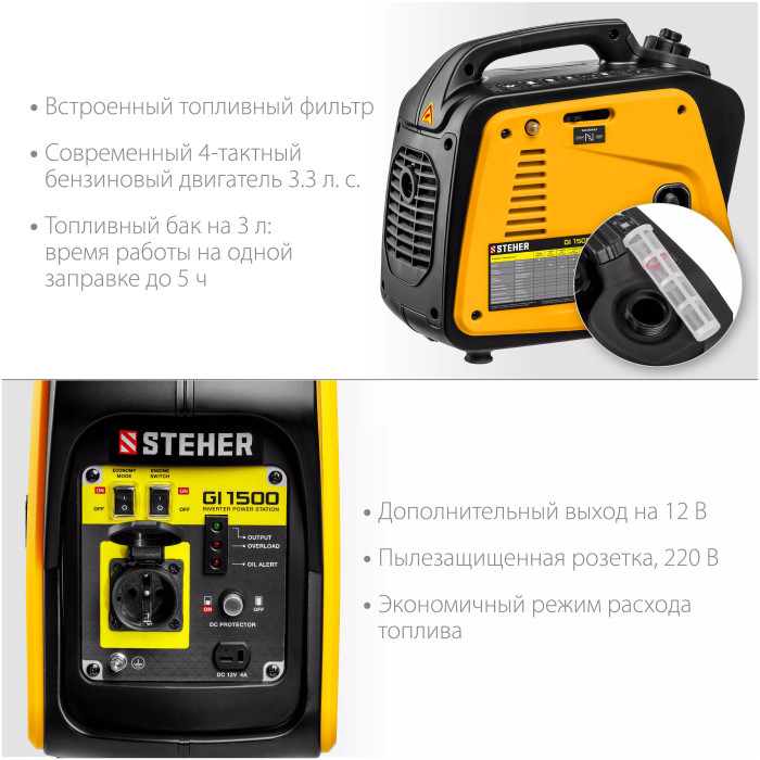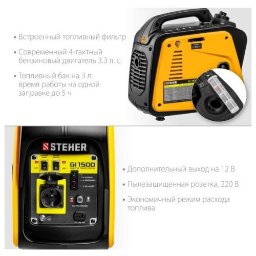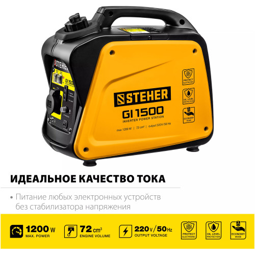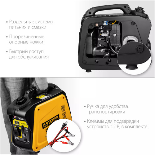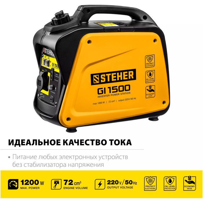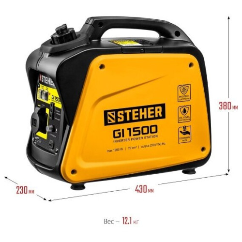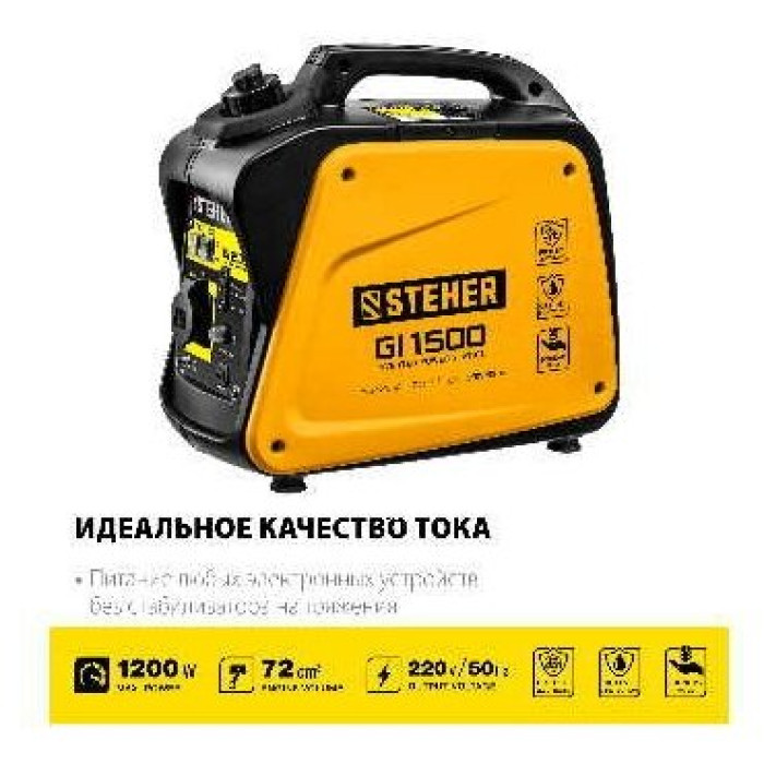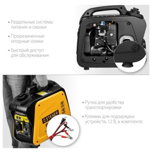 тип: бензиновый, номинальная мощность: 1000 Вт, максимальная мощность: 1200 Вт, запуск: ручной, число фаз: 1, вес: 12 кг, тип охлаждения: воздушное, Число розеток 220 В: 1, особенности: инверторный генератор