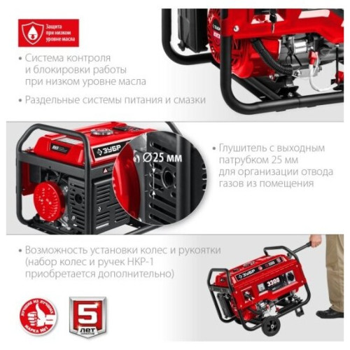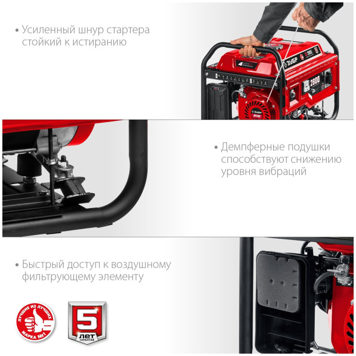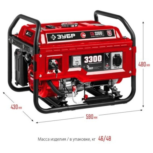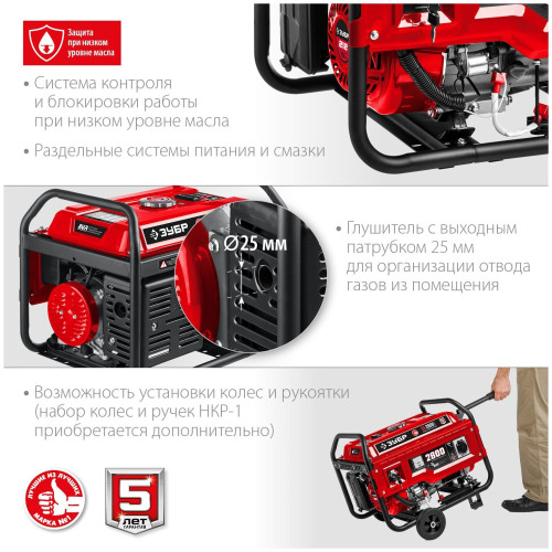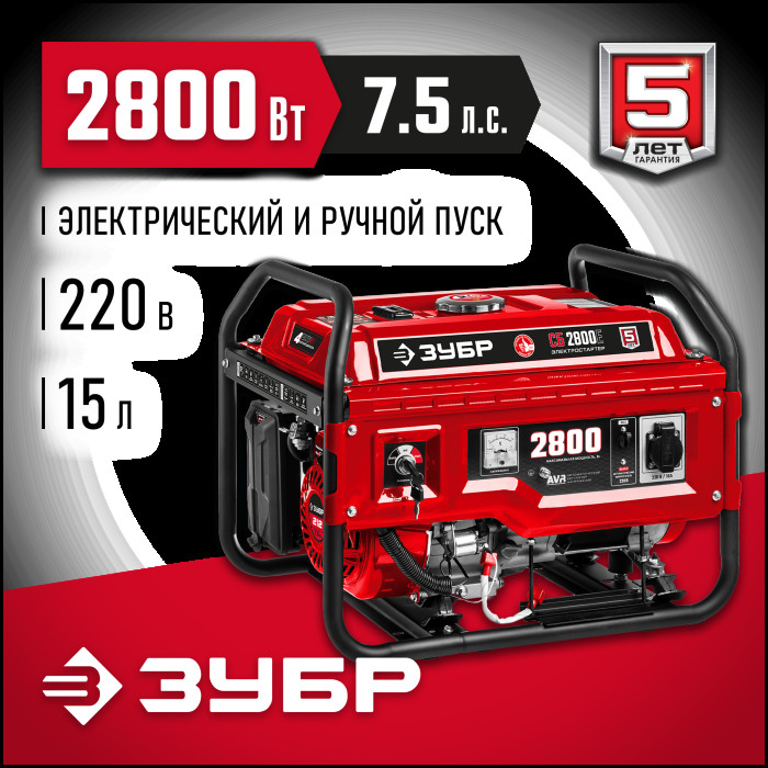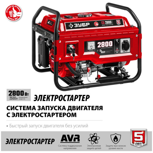 тип: бензиновый, номинальная мощность: 2500 Вт, максимальная мощность: 2800 Вт, запуск: электрический, ручной, число фаз: 1, вес: 44.10 кг, тип охлаждения: воздушное, уровень шума: 69 дБ, Число розеток 220 В: 1, функции: защита от перегрузок, вольтметр, выход 12 В