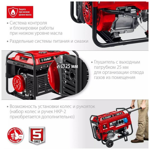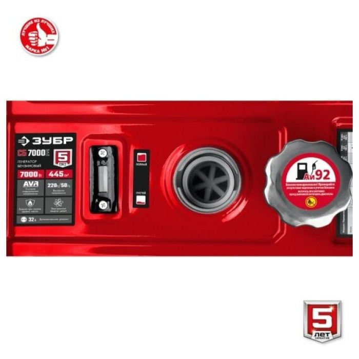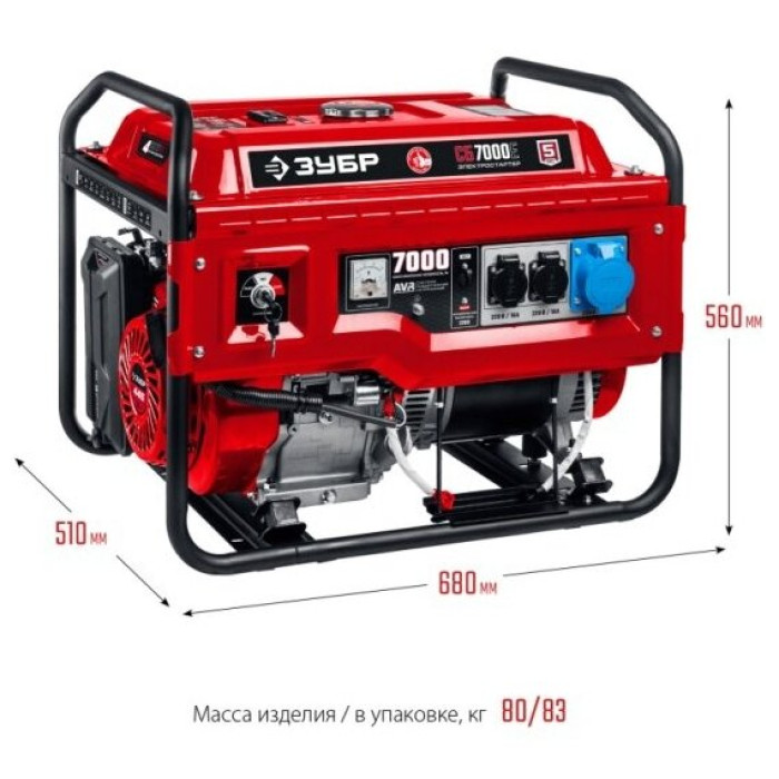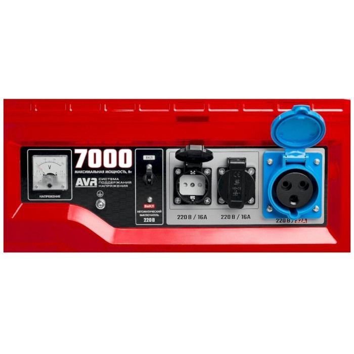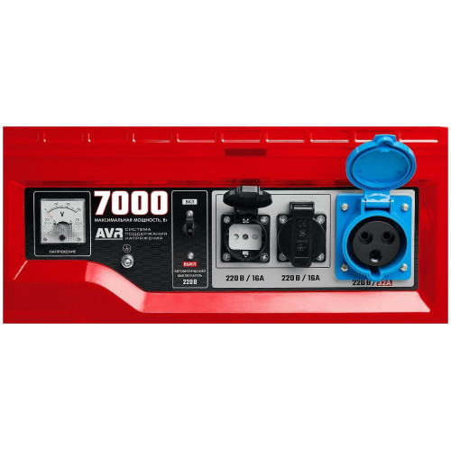 тип: бензиновый, номинальная мощность: 6500 Вт, максимальная мощность: 7000 Вт, запуск: электрический, ручной, число фаз: 1, вес: 80 кг, тип охлаждения: воздушное, уровень шума: 73 дБ, Число розеток 220 В: 2, функции: защита от перегрузок, вольтметр
