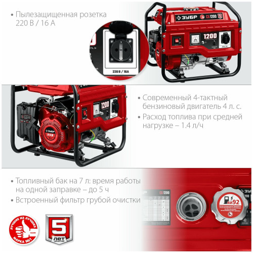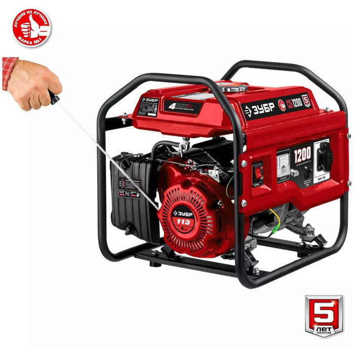 тип: бензиновый, номинальная мощность: 1000 Вт, максимальная мощность: 1200 Вт, запуск: ручной, тип охлаждения: воздушное