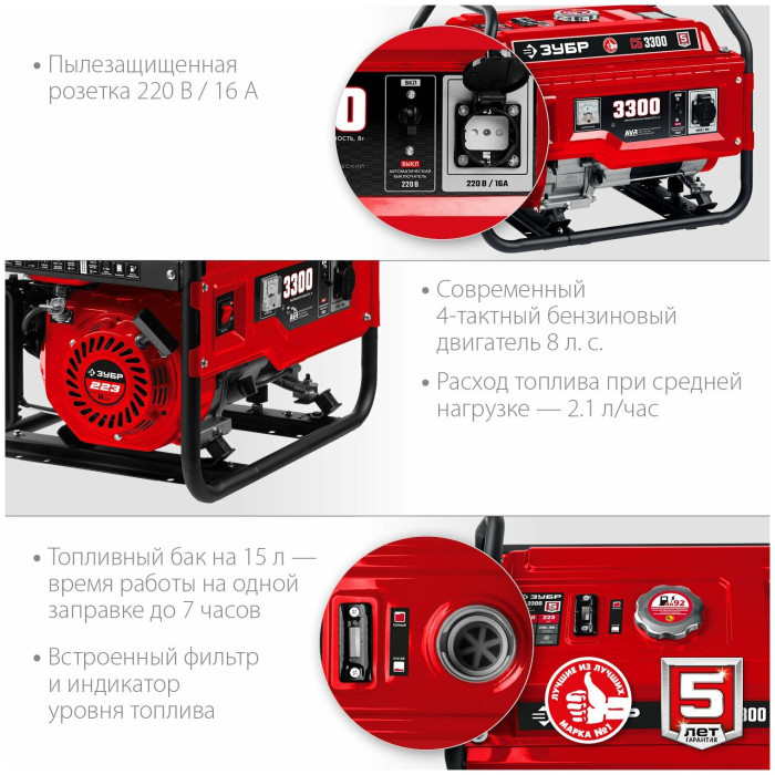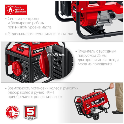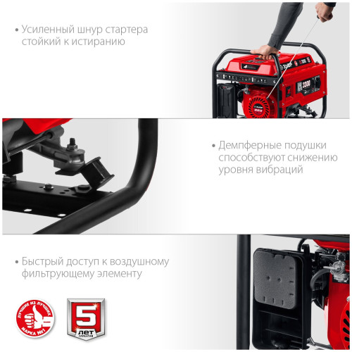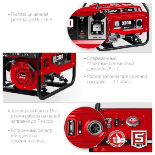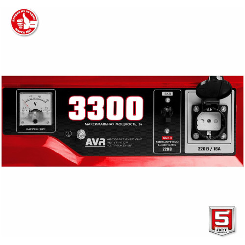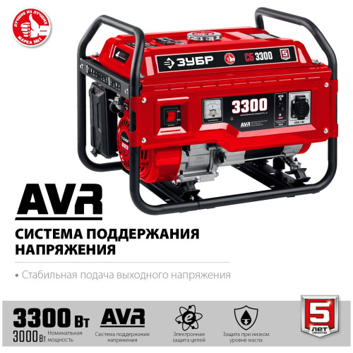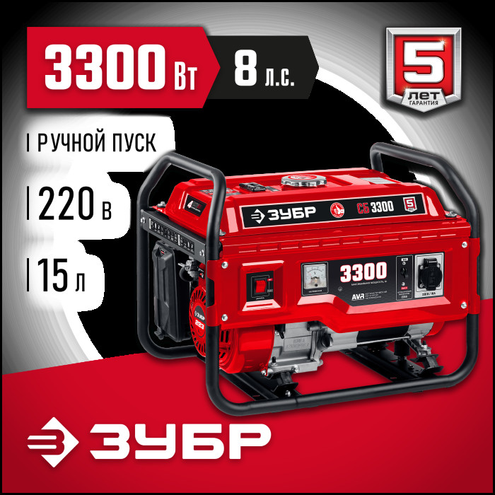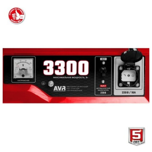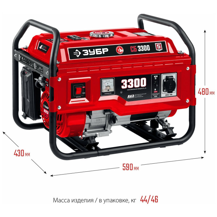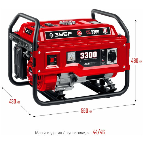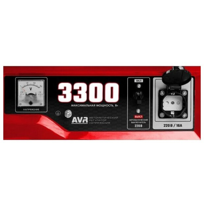 тип: бензиновый, номинальная мощность: 3000 Вт, максимальная мощность: 3300 Вт, запуск: ручной, число фаз: 1, вес: 44 кг, тип охлаждения: воздушное, уровень шума: 72 дБ, Число розеток 220 В: 1, функции: защита от перегрузок, вольтметр