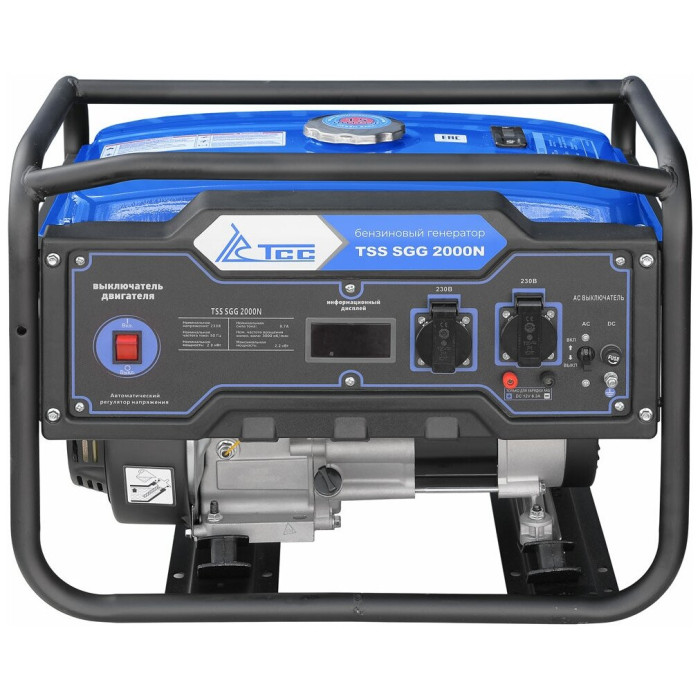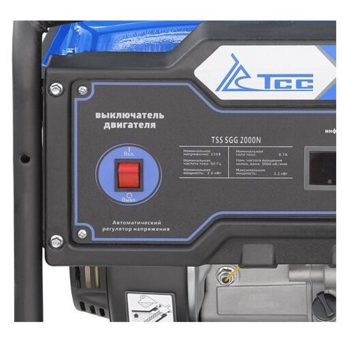 тип: бензиновый, номинальная мощность: 2000 Вт, максимальная мощность: 2200 Вт, запуск: ручной, число фаз: 1, вес: 88 кг, тип охлаждения: воздушное, уровень шума: 66 дБ, время непрерывной работы: 10 ч, Число розеток 220 В: 2, автономность: 10 ч, особенности: глушитель, функции: защита от перегрузок, вольтметр, счётчик моточасов, выход 12 В