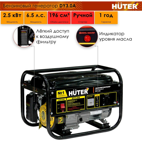 глушитель, Вольтметр, Датчик уровня масла, Защита от перегрузок, датчик уровня топлива, индикатор низкого уровня масла, медная обмотка альтернатора